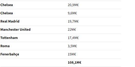 其中,曼联支付的解约金最高,达 2200 万欧元;不过切尔西在 1.081 亿欧元的总金额中占比最大 —— 两次解雇累计向穆里尼奥支付了 3050 万欧元。